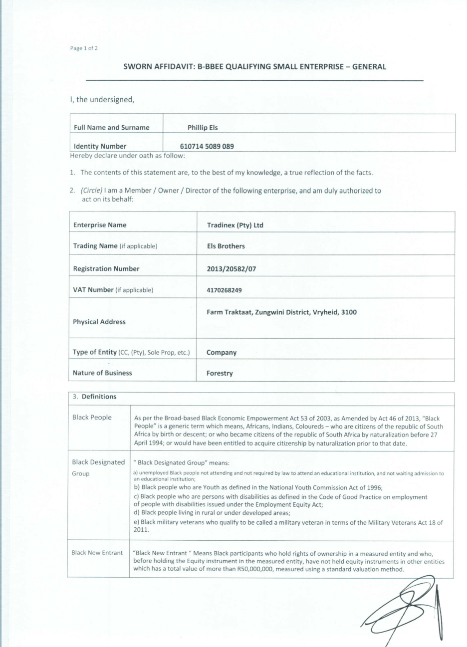 • Solid working relationships with our customers and the unique suppliers’ arrangements with black empowered communities